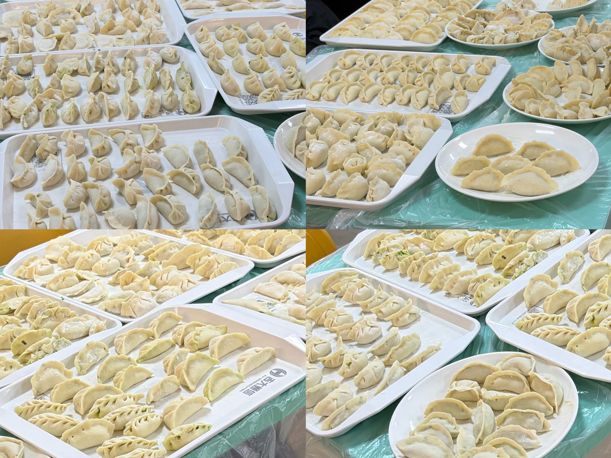 随着活动正式开始,现场迅速热闹起来。师生们自发组队、分工协作,和面、擀皮、填馅、捏褶,每一个环节都有条不紊。学院领导参与其中,与同学们并肩协作,亲手传授包饺子的技巧。有的同学手法娴熟,捏出的饺子造型规整、饱满圆润;有的同学虽略显生疏,但在老师和其他同学的耐心指导下,很快掌握要领,一个个形态各异的饺子陆续诞生,有经典的月牙饺、饱满的元宝饺,还有创意十足的花样饺,托盘上渐渐摆满了承载着欢声笑语的“成果”。包饺子过程中,现场欢声笑语不断。师生们一边忙碌着手中的活计,一边畅谈学习感悟、分享生活趣事,从课堂知识探讨到未来发展规划,从家乡过年习俗到新年美好期许,温情的话语在热气氤氲中传递,让师生关系更添了几分家人般的亲切。
