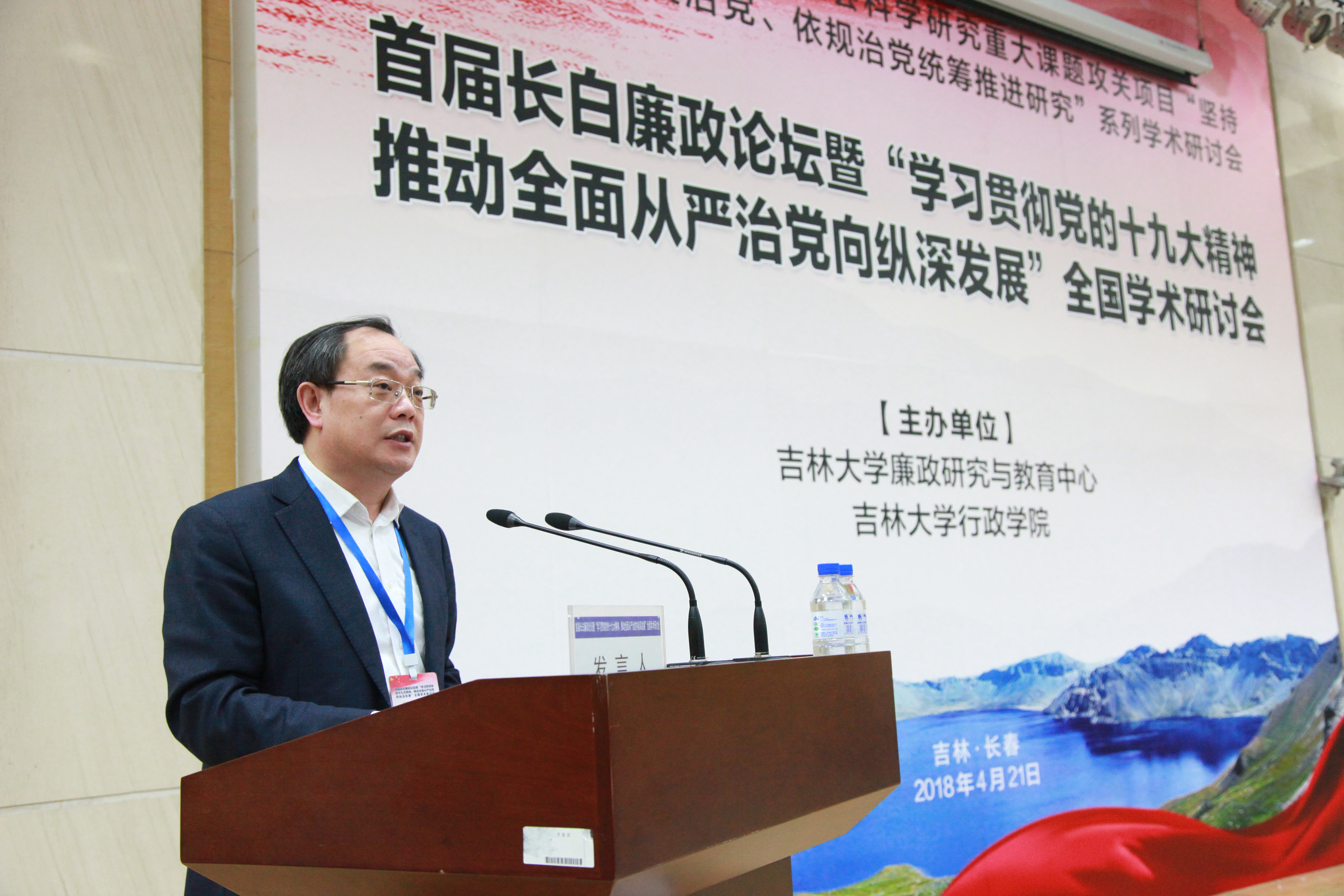 2018年4月21日,由吉林大学廉政研究与教育中心、吉林大学行政学院共同主办的首届长白廉政论坛暨“学习贯彻党的十九大精神,推动全面从严治党向纵深发展”全国学术研讨会在吉林大学召开。吉林省纪委副书记、监察委员会副主任董天波,吉林大学党委副书记、副校长王利锋及相关职能部门负责人出席会议。来自中国社会科学院、北京大学、清华大学、浙江大学、武汉大学、南开大学、西安交通大学、北京航空航天大学等全国50余所高校和科研机构的90余位专家学者及《吉林大学社会科学学报》《学习与探索》《社会科学战线》《理论探索》等杂志社相关负责人参加会议。《中国社会科学报》等新闻媒体对会议进行了跟踪报道。