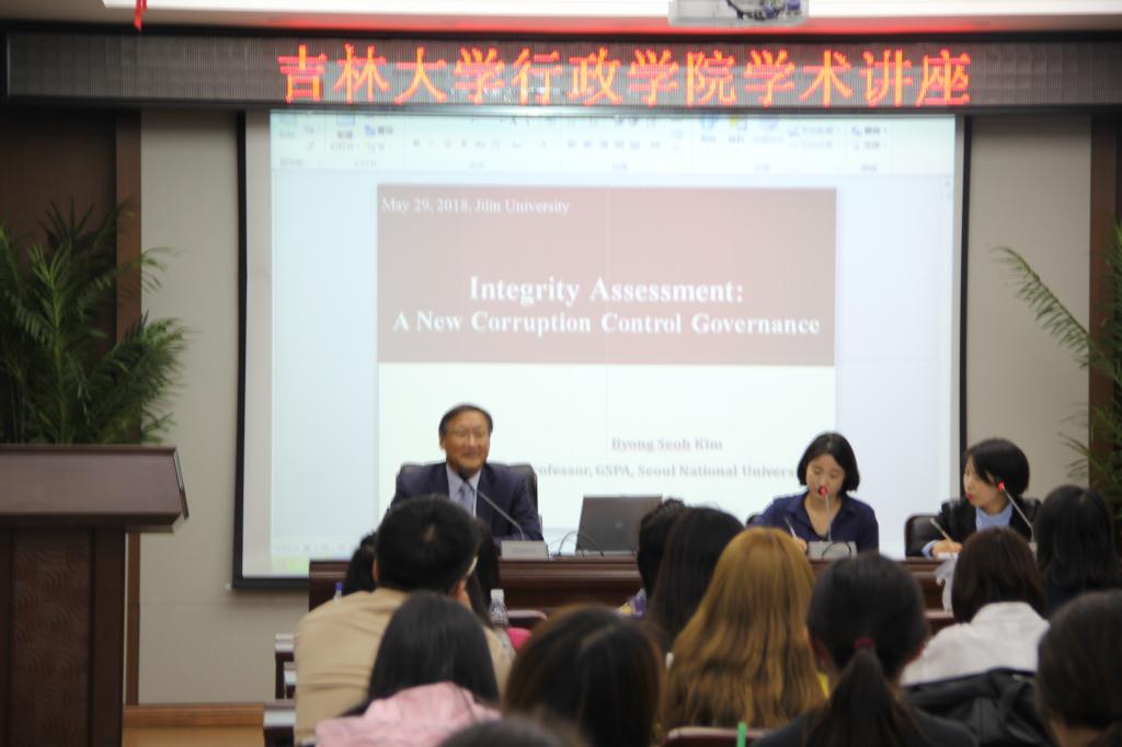 2018年5月29日下午1点30分,由吉林大学行政学院、吉林大学廉政研究与教育中心共同举办的行政学院学术讲座在东荣大厦三楼B303廉政中心第一会议室如期举行。首尔大学行政学院国家领导力研究所所长、韩国行政学会会长金秉燮 教授为大家带来了题为“公共腐败与市民容忍度:给予朴槿惠案的反腐经验”的讲座。