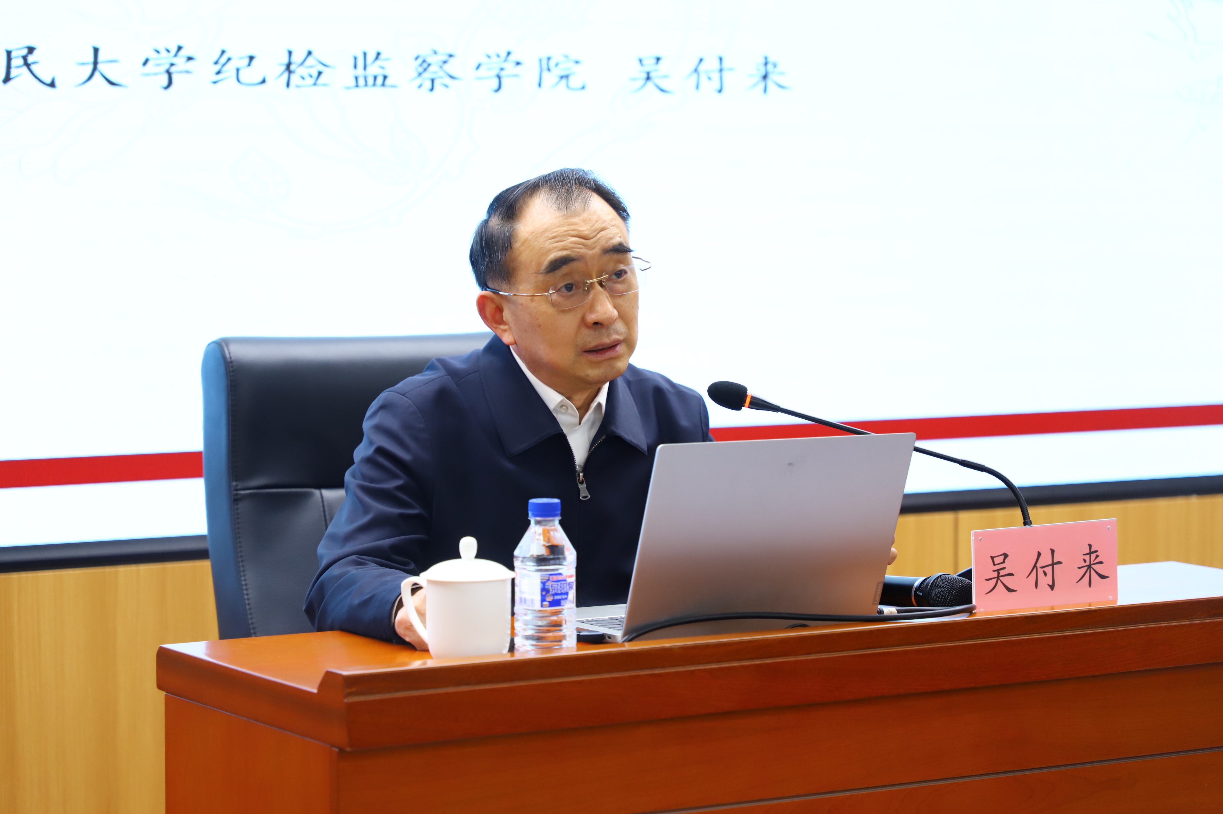 2025年12月05日,吉林大学哲学社会科学学术讲座(总第1275场)暨清晏廉政名家讲坛(第13期)在东荣大厦B102报告厅成功举办。国务院学位委员会纪检监察学学科评议组成员、中国人民大学原党委副书记兼纪委书记、纪检监察学院学术委员会主任吴付来教授受邀作题为《深学细悟习近平总书记关于党的自我革命的重要思想》的学术讲座。吉林大学党委副书记、纪委书记,国家监委驻吉林大学监察专员胡漫,纪委副书记、党委巡视办主任刘晓昌,行政学院党委书记陈希贵出席活动,来自行政学院、廉政研究院、马克思主义学院,以及学校纪检监察机构的110余名师生参加学习。讲座由吉林大学行政学院副院长、廉政研究院院长刘畅教授主持。
