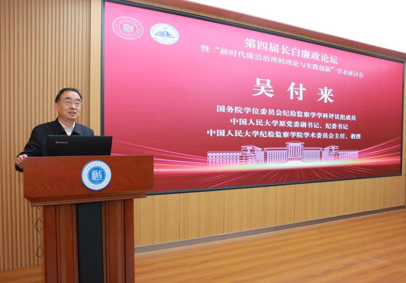 国务院学位委员会纪检监察学学科评议组成员、中国人民大学原党委副书记、纪委书记吴付来教授致辞