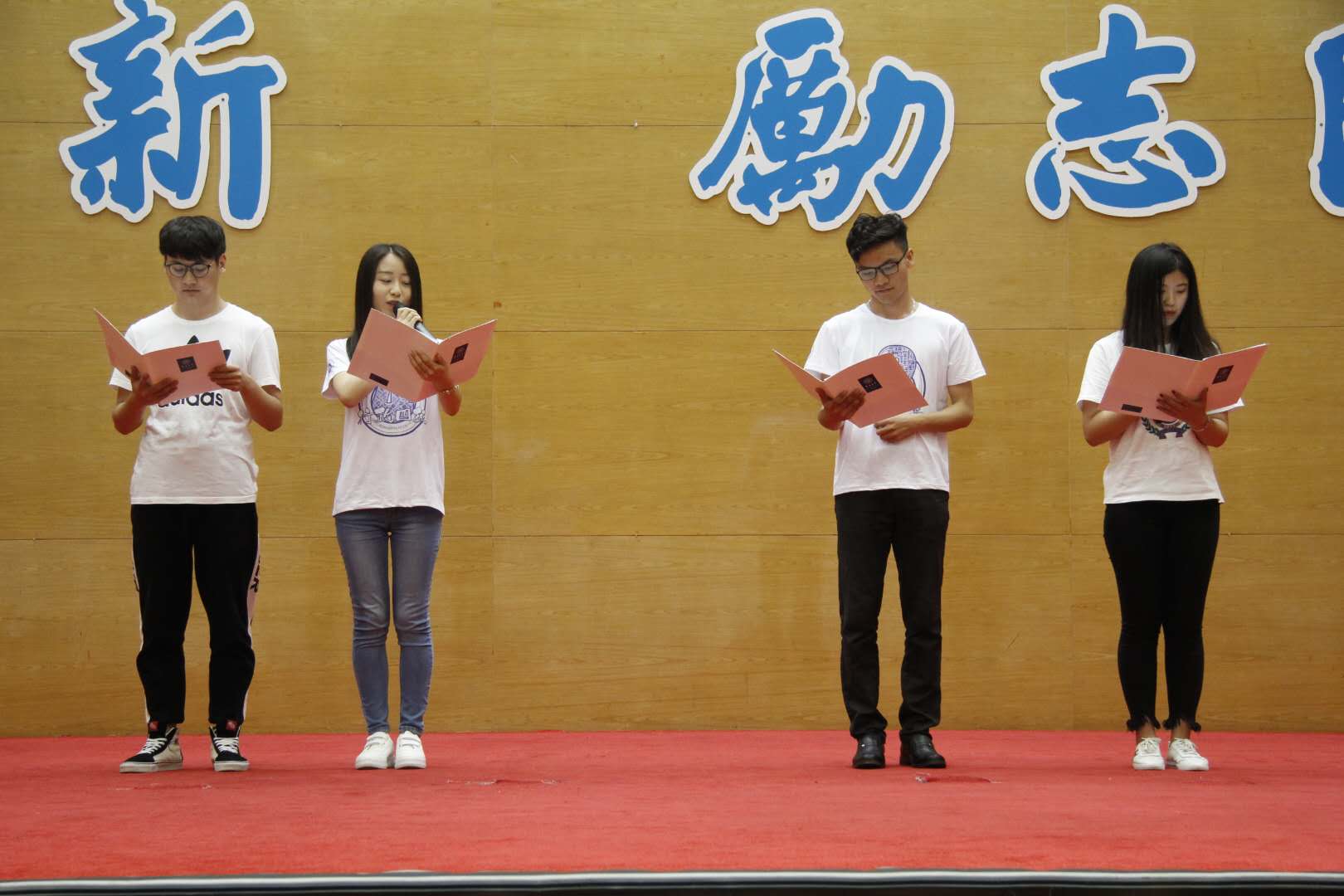 随后,学生代表申竹韵(2014级)、李潇(2014级)、曹烨(2015级)和杜秀贞(2016级)为大家送上了诗朗诵《定格的仲夏》。