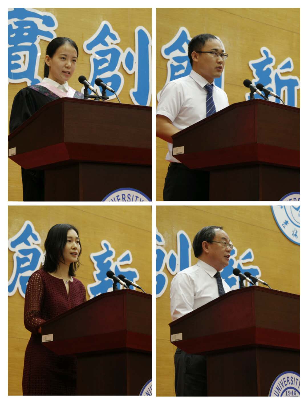 本科毕业生代表白天上台发言。她将大学生活中的美好回忆娓娓道来,从踏入吉林大学、认识行政学院开始,一路走来,她感恩支持自己的家长、教导自己的老师、帮助自己的同学以及爱护自己的学院。最后,她对所有同学、老师以及母院献上了最诚挚的祝福;随后,研究生毕业代表、吉林大学十佳研究生、校优秀博士学位论文获得者田玉麒上台发言。在发言中,他首先表达了对老师及学院栽培的感恩之情,并深情回顾了自己的大学生活。十个春去冬来,他完成了从吉大行政人到吉大毕业生的蜕变,他还勉励同学们坚持吉大行政人的底色:胸怀公共之精神,恪守独立之人格。