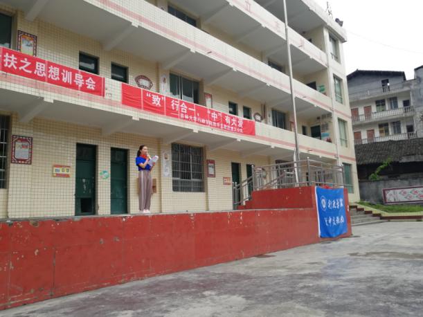 打赢脱贫攻坚战,对全面建成小康社会、实现“两个一百年”奋斗目标具有重要意义。致中支教团认真学习习近平总书记扶贫开发战略思想和精准脱贫基本方略,积极参与到分水镇易地扶贫、教育脱贫工作。思想训导会上,致中支教团志愿者代表赵书韫同学也进行了扶贫攻坚宣传演讲。