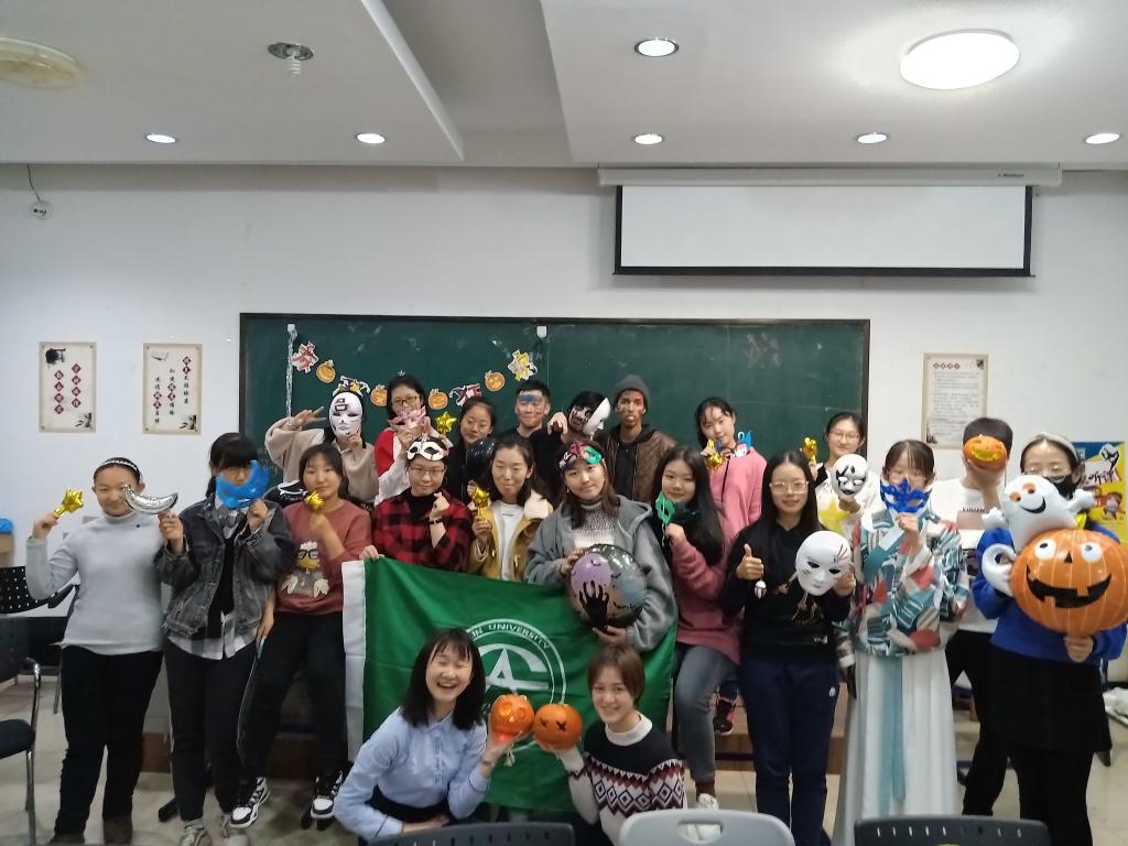 11月3日晚,行政学院外语协会在经信教学楼C101室举办了以万圣节为主题的英语角活动。共有20余名同学参加了本次活动,其中包括数名留学生。