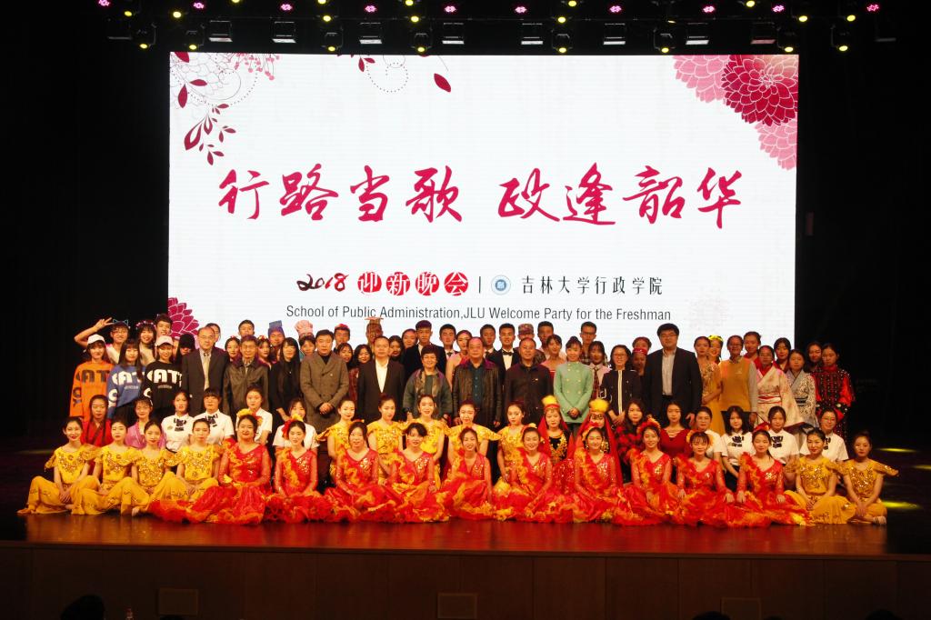 乐起舞动,激情四射的舞蹈《Latata》拉开了晚会的序幕。《Who Dat Boy》、《DDu-Du DDu-Du》等舞蹈热烈而奔放,点燃了全场观众的热情;说说军训那点事儿,话剧《花木兰》讲述了军训中表现懒散的主人公在穿越后见证花木兰的英勇事迹而深受触动的故事;小品《四大才子》演绎了一场令人啼笑皆非的比武招亲,台下观众笑声不断;感谢在祖国的北疆遇到最好的你们,《陪我长大》与《最美的期待》唱出了这份相遇的小幸运;婉转抒情的歌伴舞《礼仪之邦》将舞蹈和声乐融合,传递出中华文化的无穷魅力;信仰指路,未来可期,诗朗诵《写给未来的你》激励行政学子昂首阔步向前进;朝鲜族、苗族、维吾尔族等少数民族同学带来的歌舞串烧展现出他们源于生活又充满诗情的民族之美,一曲《美丽中国》抒写了全民族共同的爱国之情。硕士研究生也带来了精彩的歌舞表演:一首民谣——《阿刁》,让我们触到一个纯净而诚恳、从容而倔强的灵魂;舞蹈《丝路》的表演者们的曼妙身姿勾勒出大漠的神秘,悠悠驼铃犹在耳边。2018级本科生的班主任们也登上了舞台,歌颂那于白山黑水间尽显荣光的校园。一首《吉大赋》,72年的变革画卷尽铺陈;一首《吉大赋》,光明的未来之路正迈进。此外,团委书记曲畅竹与我院学生会主要负责同学也合唱了歌曲《你曾是少年》和《光阴的故事》,献给数周以来为本次晚会辛苦排练的演员及默默付出的工作人员。2018年迎新晚会在《亲吻祖国》的嘹亮歌声中落下帷幕。