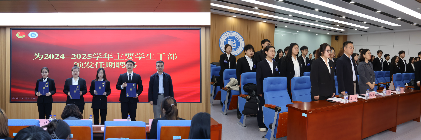 会议在吉林大学校歌声中开幕,陈希贵为2024-2025学年主要学生干部颁发任期聘书。