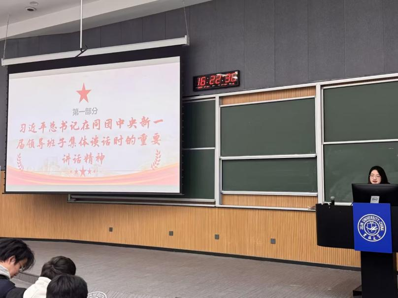 总结收获环节。胡曼祺(2024级本科生)总结指出,实现社会主义现代化需要一代代人的接续奋斗,号召同学们深刻领会全会精神,将“两个确立”的决定性意义融入思想自觉和行动自觉,夯实专业基础,培养创新能力和实干精神,把青春奋斗融入党和人民的事业,以实际行动为全面建设社会主义现代化国家贡献智慧与力量。
