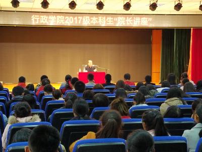 10月19日下午,行政学院2017级本科生“院长讲座”在田家炳学生活动中心A座礼堂举办。行政学院院长张贤明教授第三次担任了本讲座的主讲嘉宾。行政学院2017级全体本科生参加了讲座。本场讲座由学工办主任、2017级本科生辅导员刘洋主持。