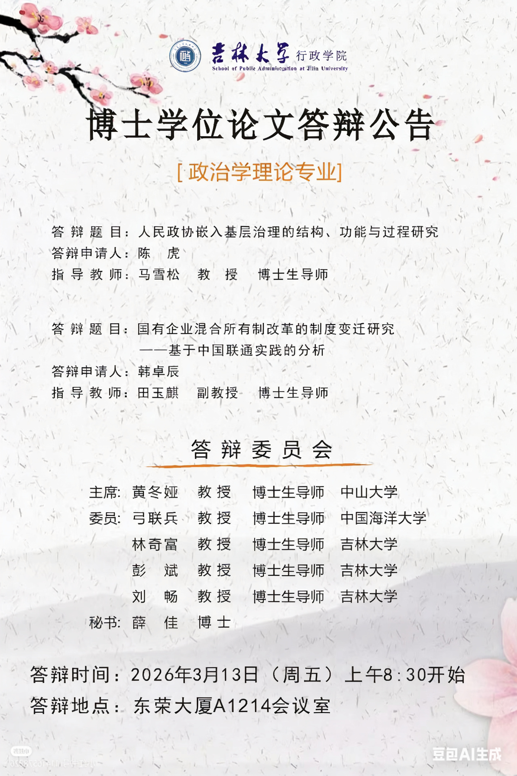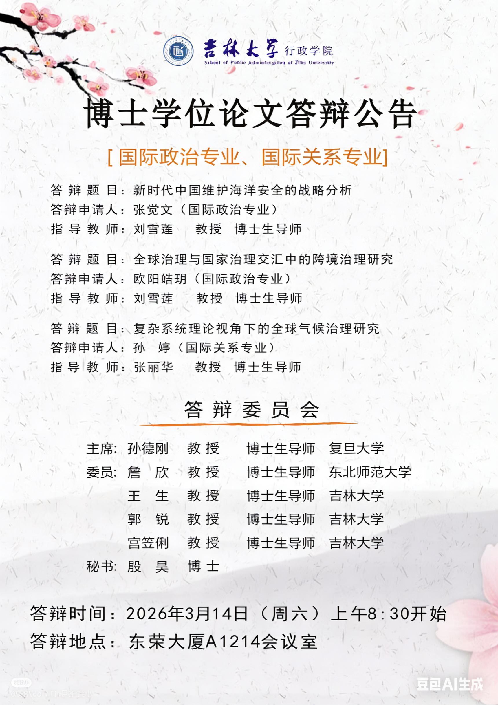 上一篇:吉林大学行政学院2026年(6月批次)博士学位答辩申请人成果审查(公示)