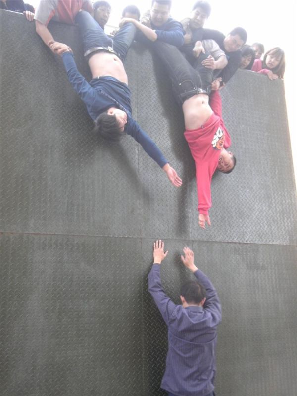 17日,在南湖大路消防中队,2010级学生们通过“高空抓杠”、“攀爬高空云梯”、“断墙”、“毕业墙”等拓展训练项目成功进行了自我突破和自我超越。虽然前面的个人项目学生们的表现不一,仅有少数学生能够全部完成前三个项目,但在集体项目“毕业墙”上,大家的精诚团结使得全体成功翻越。一片欢呼雀跃后,参加活动的学生合影留念。同学们一致认为,通过当天大家身体力行的共同努力,进一步增强了班级的凝聚力,提高了班级的团队协作能力、增强了团队意识,2011级部分同学也参加了拓展训练。