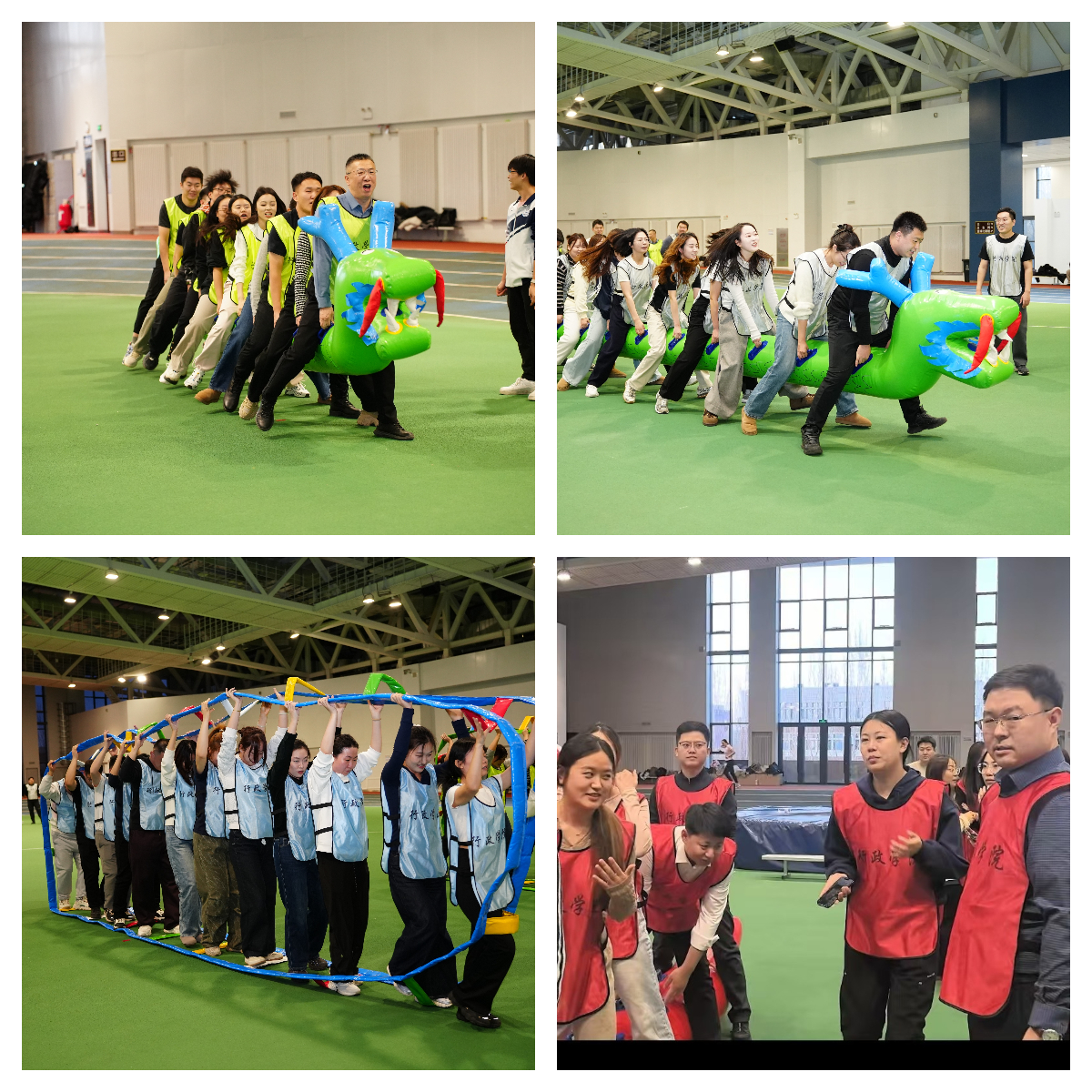 随后,体育学院学生带来精彩开场表演,活力满满的展示点燃了现场氛围。主教练邹然详细介绍了活动规则与注意事项,为活动顺利开展提供专业指导。2025级MPA新生随机混合编为5支队伍,围绕赛龙舟、同心鼓、车轮滚滚、滚轴接力四个精心设计的游戏展开积分角逐。赛龙舟环节中,各队成员步调一致、齐声呐喊,在同步协作中感受团队向心力;同心鼓游戏里,大家紧盯鼓面、默契配合,用精准沟通化解挑战;车轮滚滚与滚轴接力项目则考验队伍的策略规划与协同执行能力,队员们各司其职、互帮互助,赛场之上掌声与欢呼声此起彼伏。整个过程中,同学们放下拘谨、全情投入,在趣味竞技中打破隔阂,在并肩作战中凝聚共识,充分展现了MPA学子昂扬向上的精神风貌。